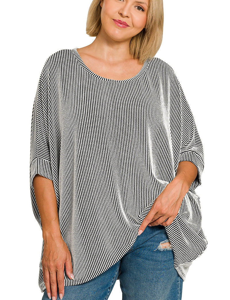 Black & White Raised Rib Bat Sleeve Top (Plus)