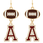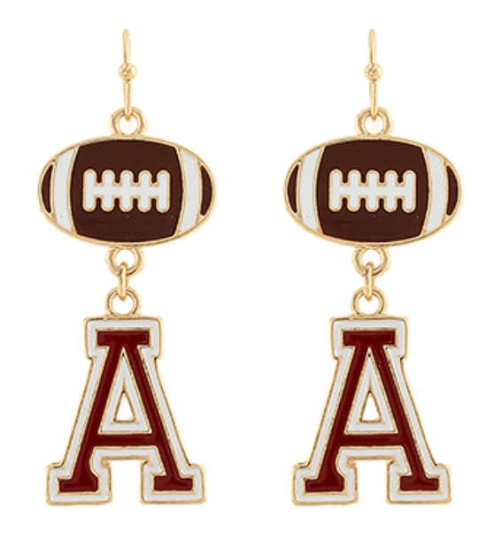 Show your pride with the Alabama Initial Earrings. Made from durable metal, these 1 1/2" earrings feature a stylish football-themed design and a fish hook closure for easy, comfortable wear. Perfect for game day or everyday fandom, they add a personal touch to any outfit while celebrating your team spirit.