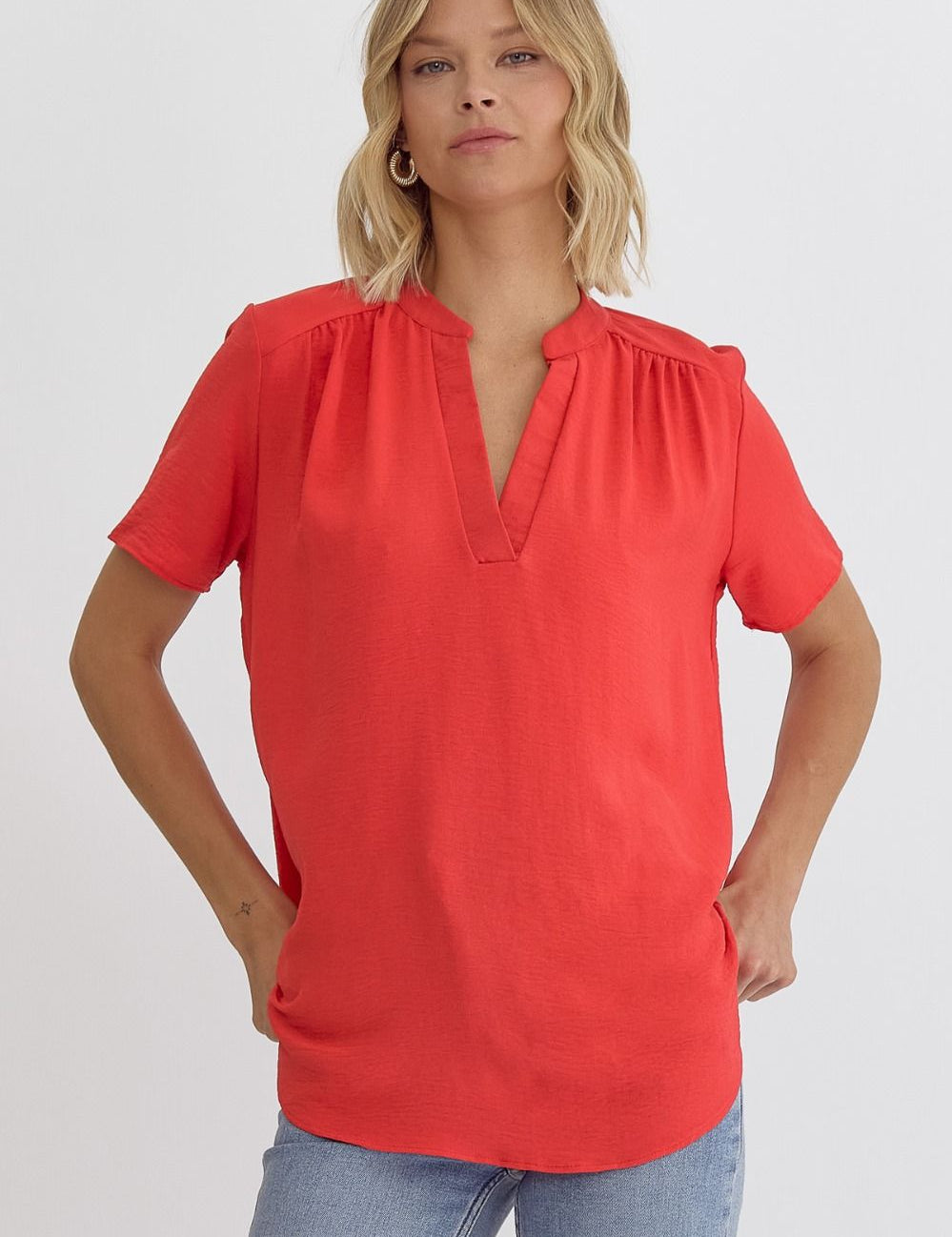 Scarlet Gathered V-Neck Top