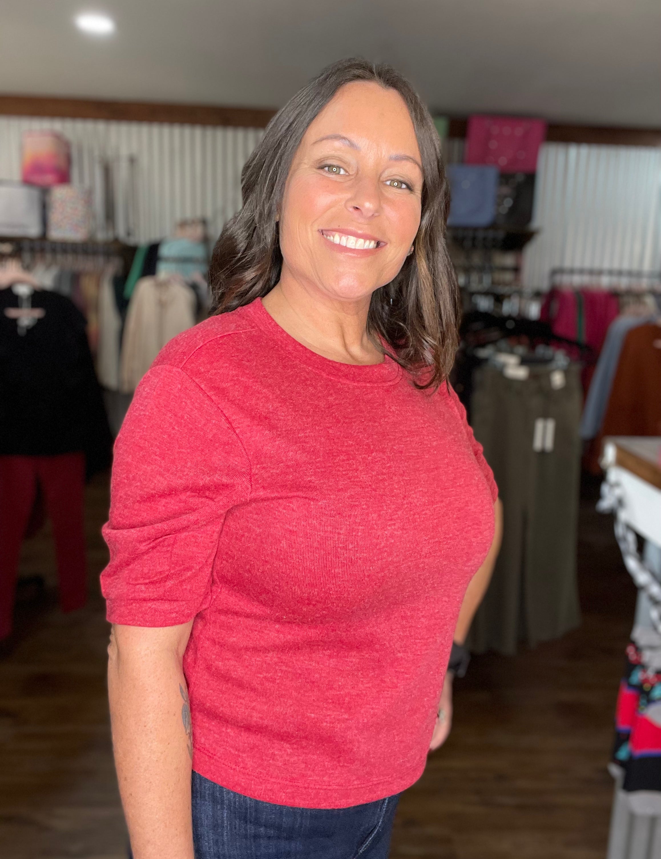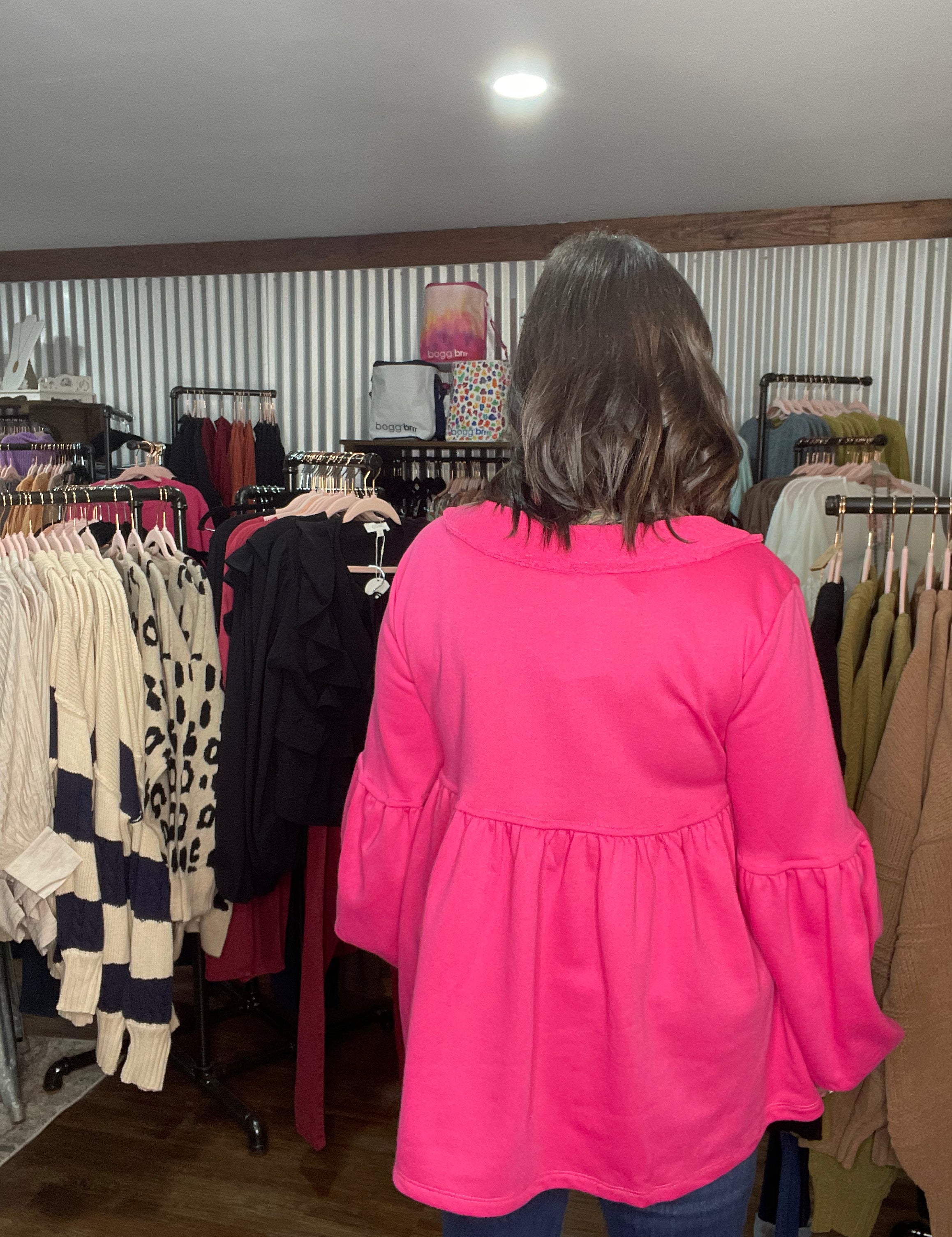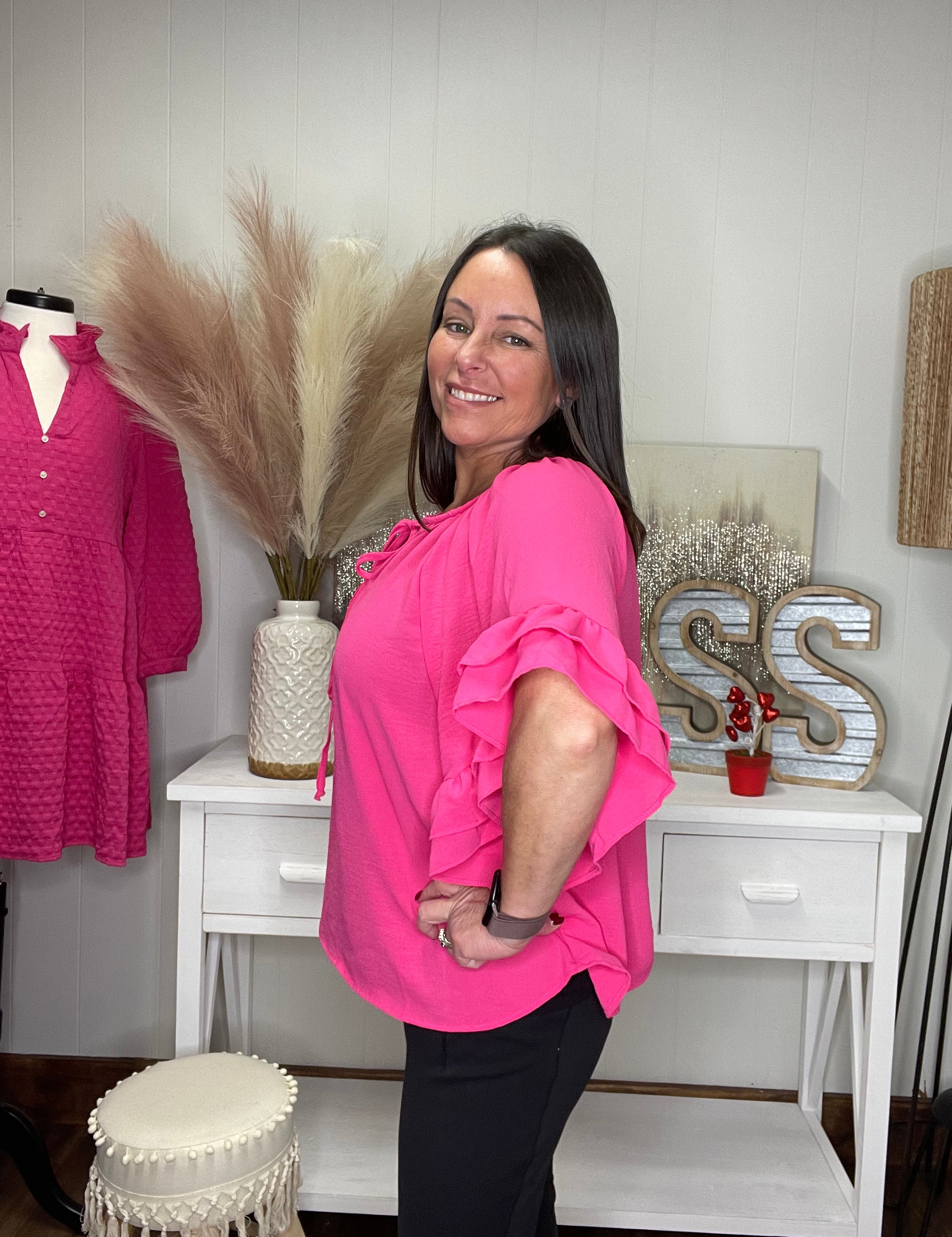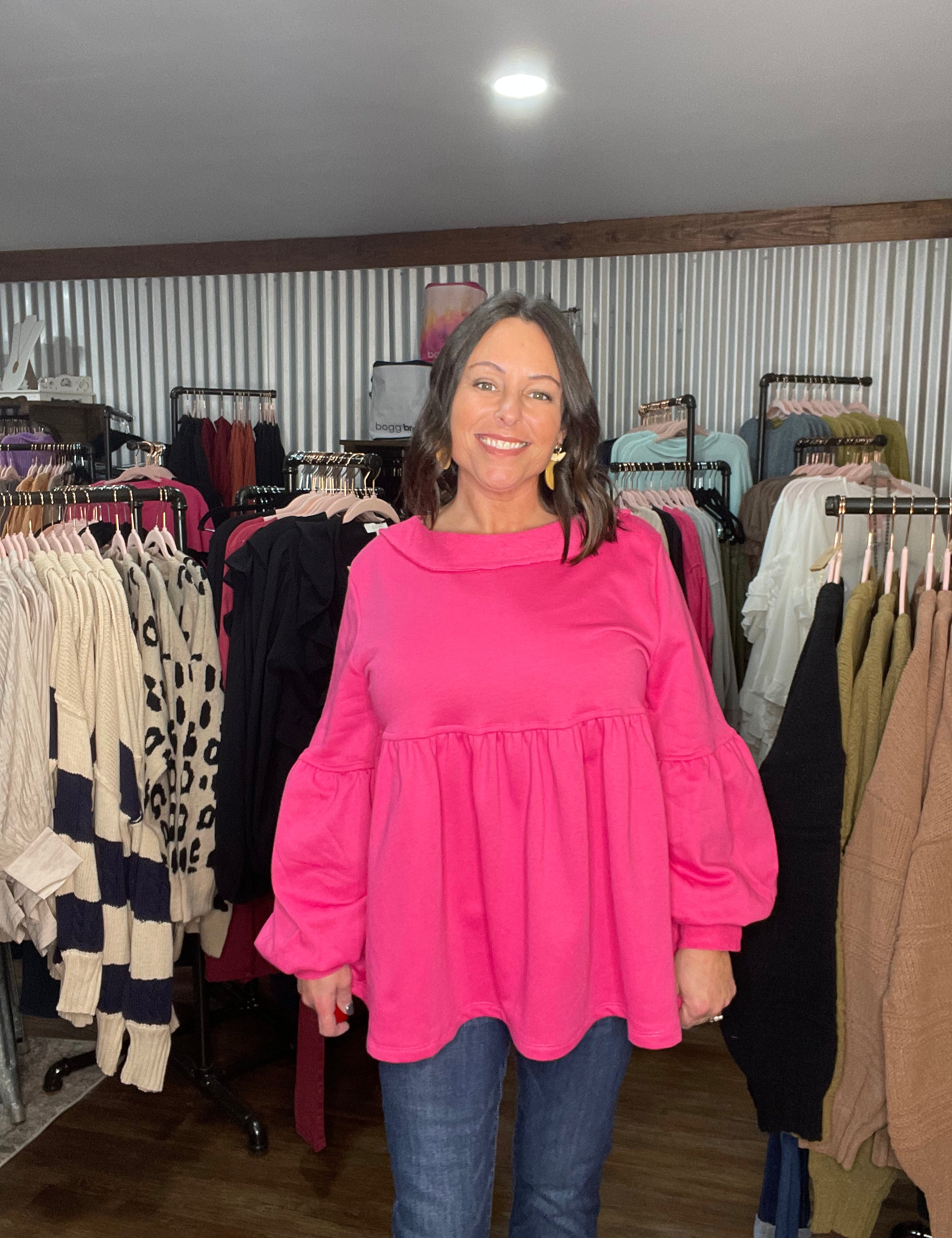 Pink Bliss French Terry Bubble Sleeve Top