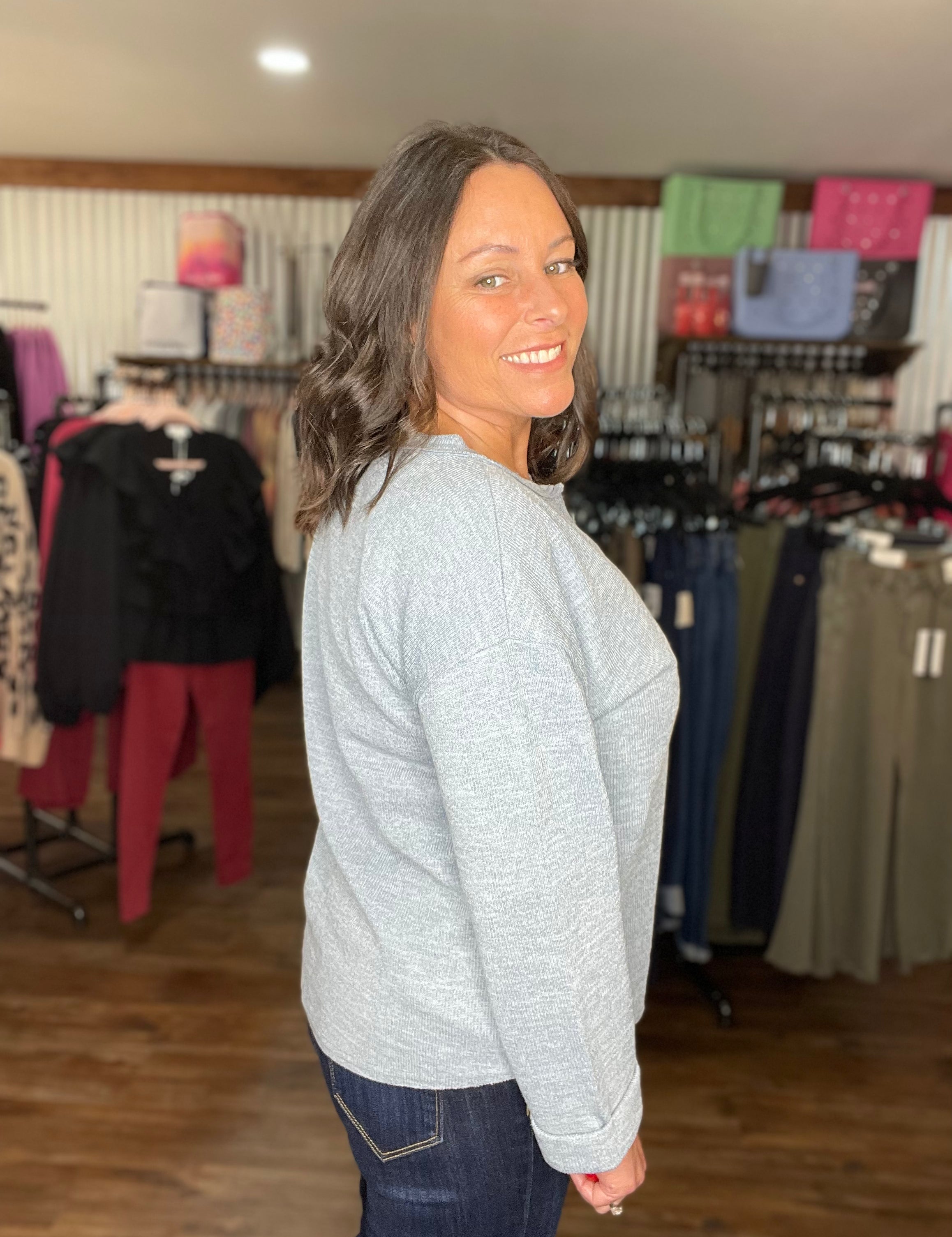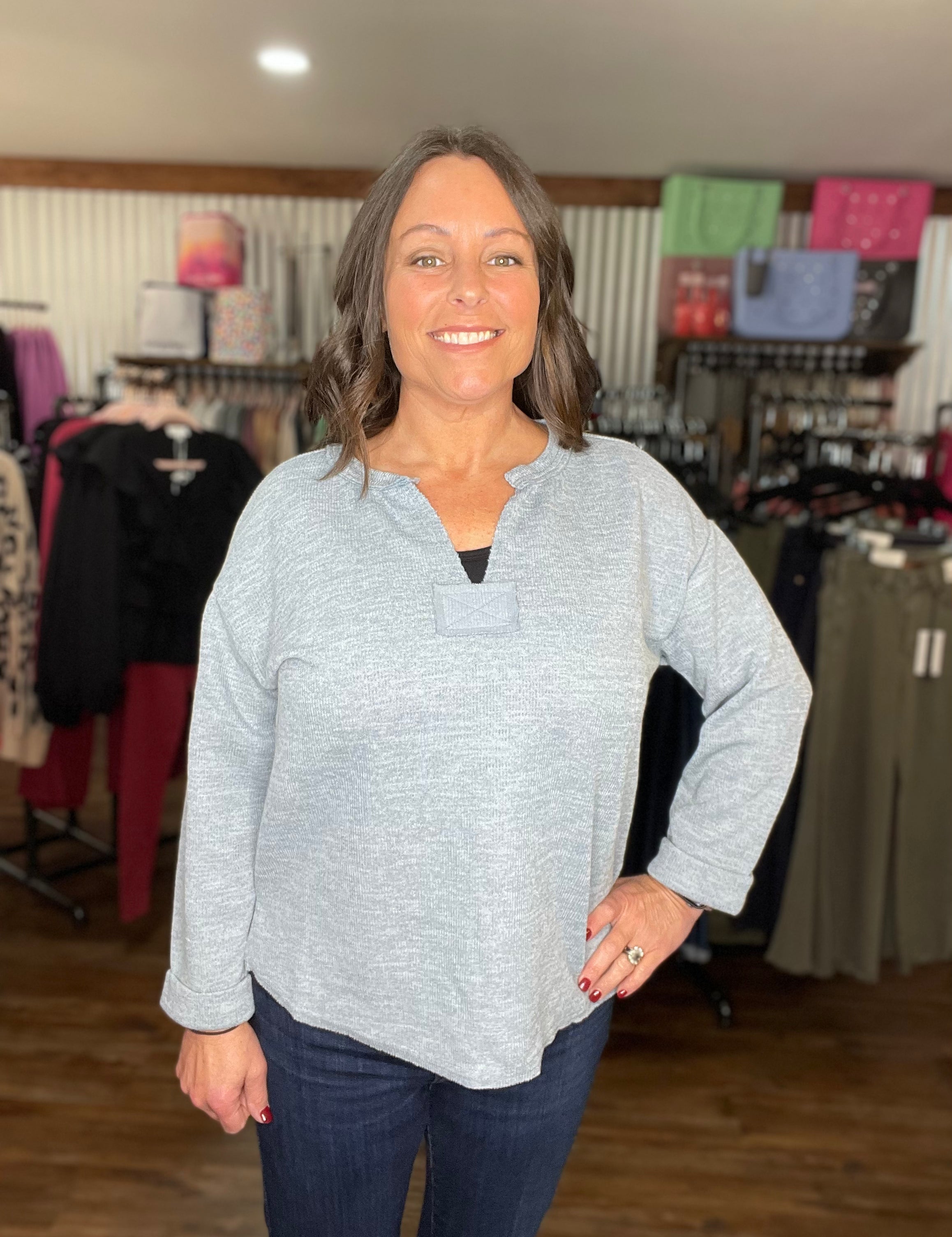 Dusty Blue Rough Hem Knit Top