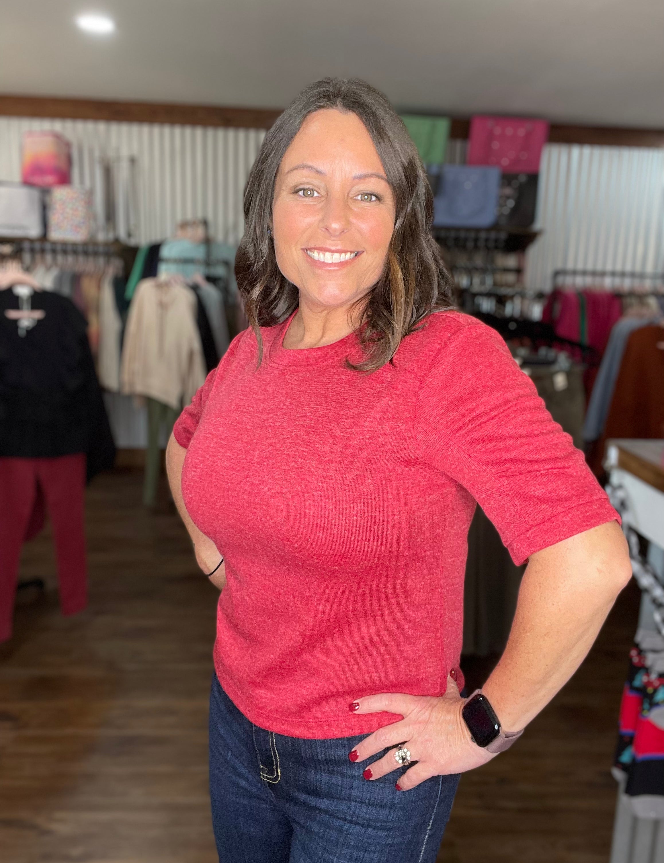 FlexFit Chic: Stretch Shirring Short Sleeve Top