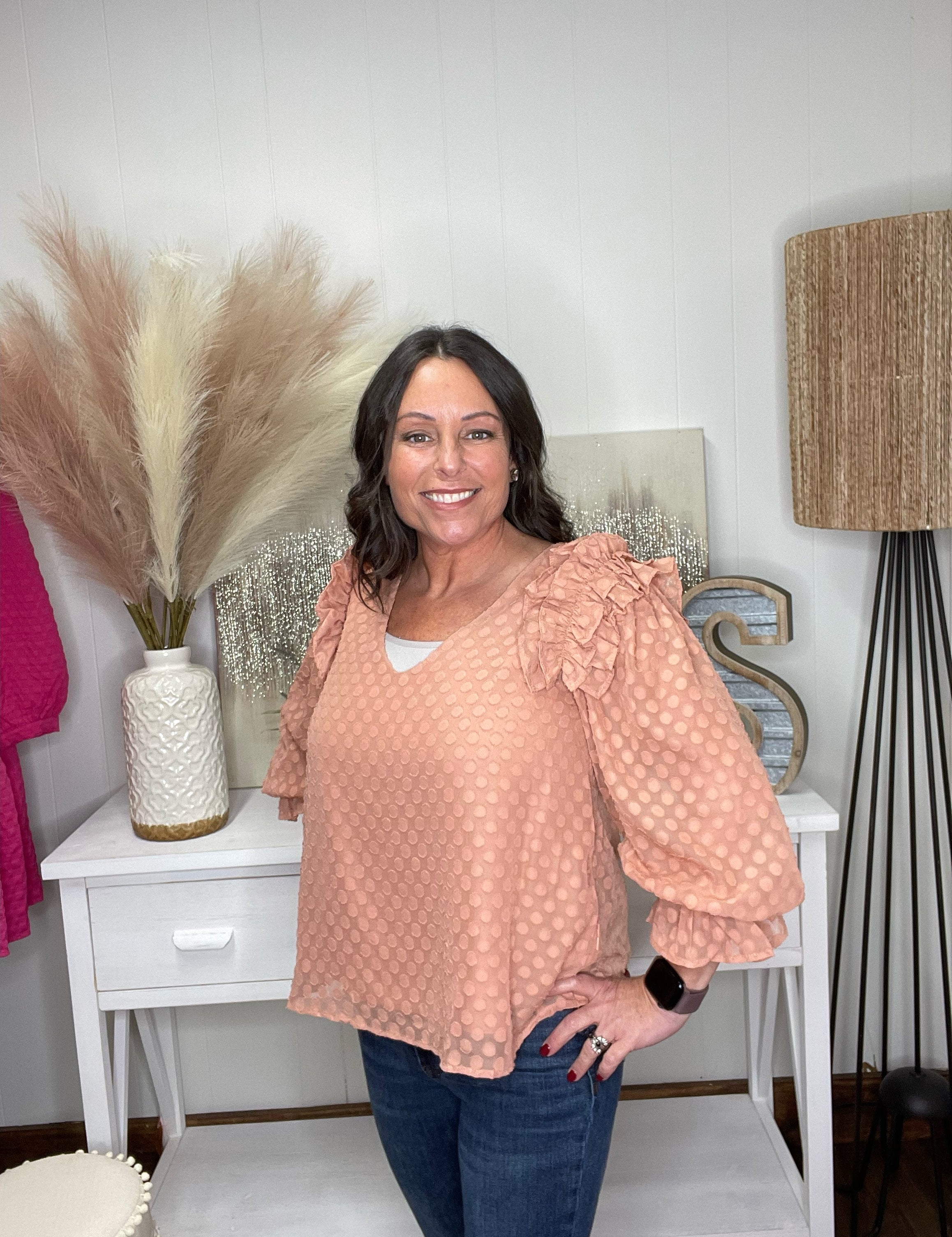 Blush Ruffle Dotted Blouse
