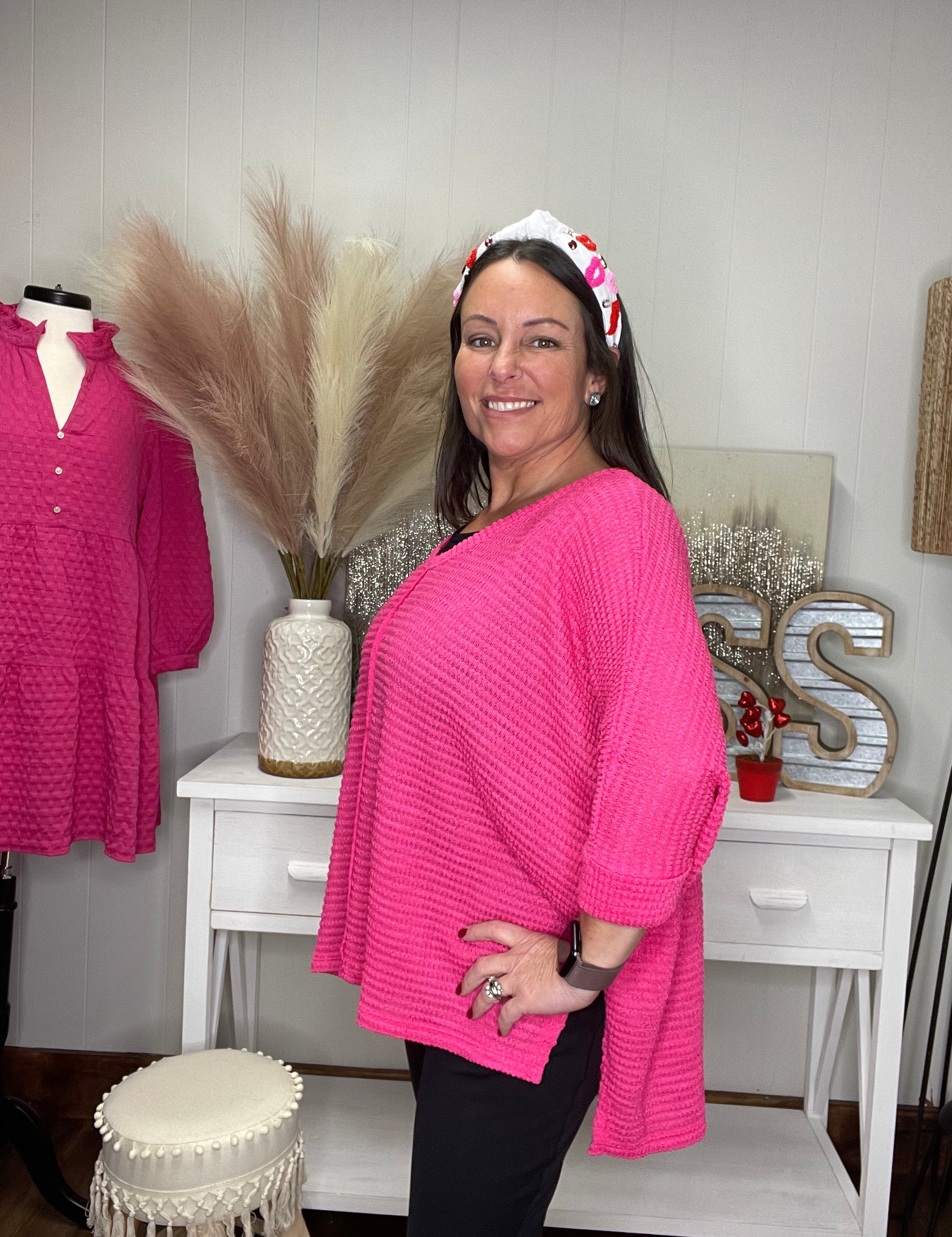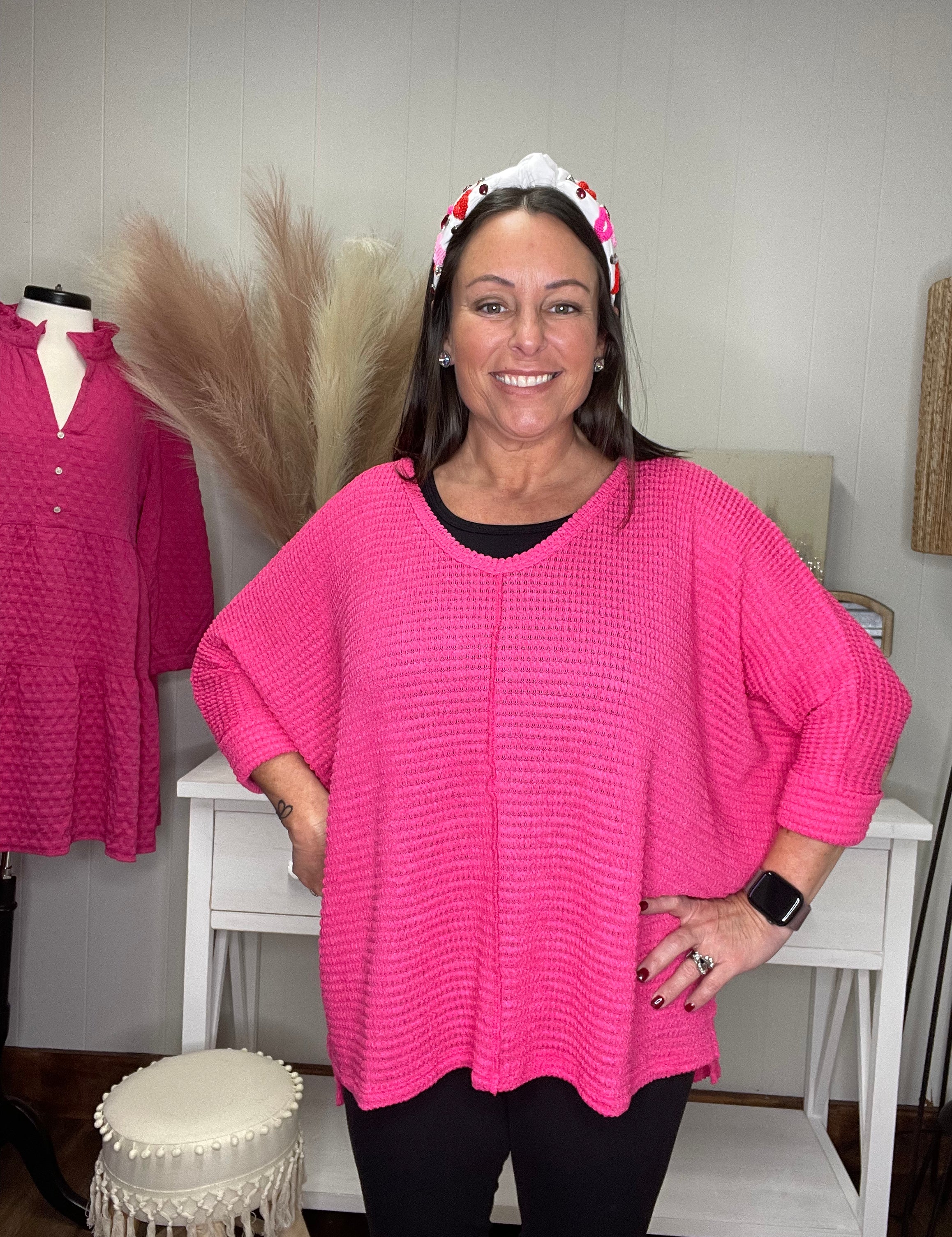 Cozy Chic Fuchsia Pullover Sweater Top