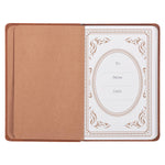 The 101 Devotions for Men in tawny brown faux leather is a powerful collection of short daily readings designed to encourage men to rely on God’s strength and stand firm in His truth. Each devotion is rooted in Scripture, offering inspiration for living a life of righteousness, godliness, faith, love, endurance, and gentleness (1 Timothy 6:11).