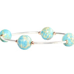 Elegant Sterling Silver Gratitude Bracelet; 12 MM Round Blue Jasper gemstone beads and Sterling Silver Links, Strung on Stretch Nylon; Standard Size fits most, up to 7" Wrist; Larger size fits up to 8" Wrist.