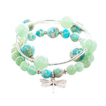 Elegant Sterling Silver Gratitude Bracelet; 12 MM Round Blue Jasper gemstone beads and Sterling Silver Links, Strung on Stretch Nylon; Standard Size fits most, up to 7" Wrist; Larger size fits up to 8" Wrist.
