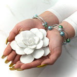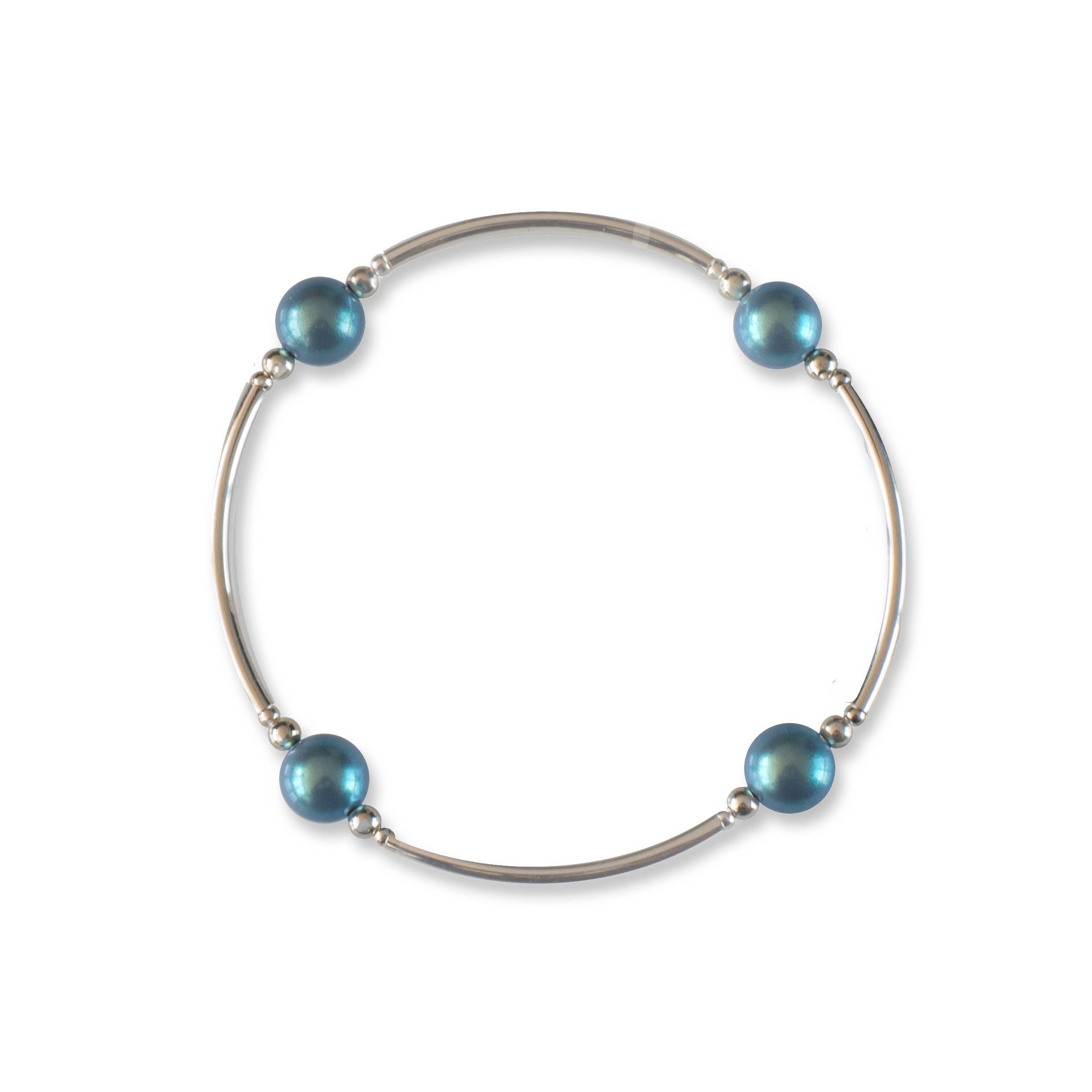 Sterling Silver & 8mm Shimmer Blue Crystal Pearls. A timeless reminder to appreciate what you already have. Each bracelet comes attached to a card with timeless gratitude message.