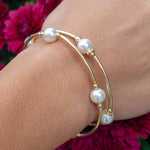 Elegant Sterling Silver Gratitude Bracelet; 8MM round White crystal pearl beads and Gold-filled Links, Strung on Stretch Nylon; Standard Size fits most, up to 7" Wrist