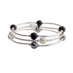 Elegant Sterling Silver Gratitude Bracelet; 8 MM White pearl and Sterling Silver Links, Strung on Stretch Nylon; Standard Size fits most, up to 7" Wrist; Larger size fits up to 8" Wrist