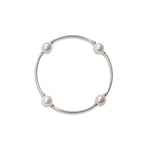 Elegant Sterling Silver Gratitude Bracelet; 8 MM White pearl and Sterling Silver Links, Strung on Stretch Nylon; Standard Size fits most, up to 7" Wrist