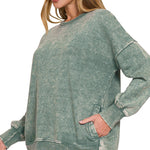 Acid Wash Fleece Hi-Low Hem Pullover with Pockets – Ash Jade (S-3XL)