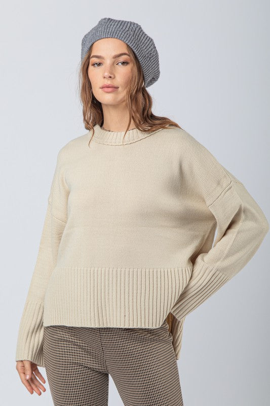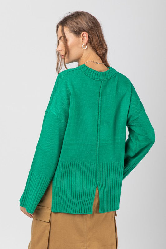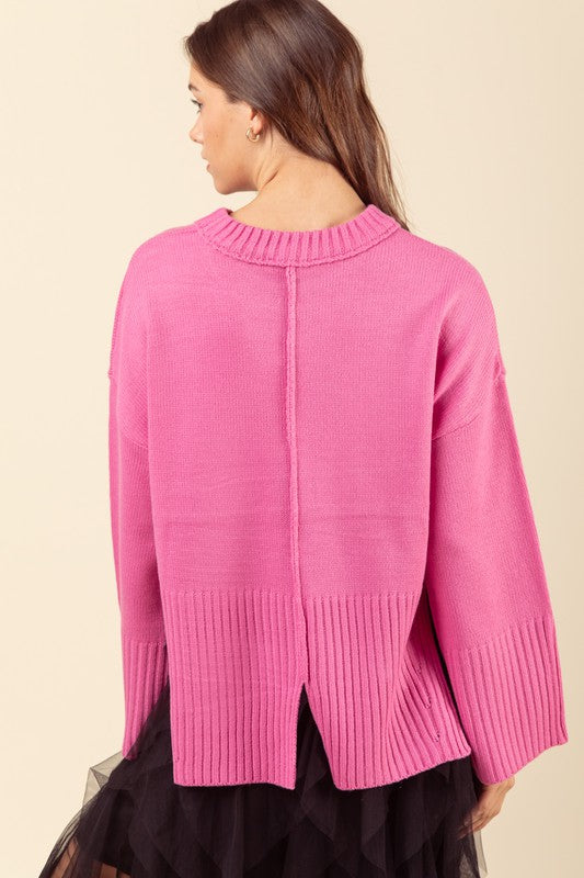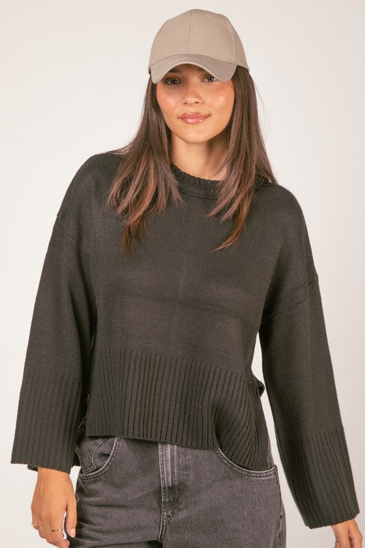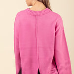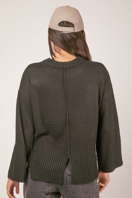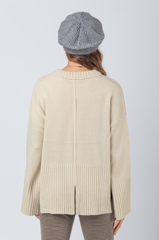 Introducing the All About the Details Sweater, a casual ribbed knit sweater top featuring a back slit detail, oversize fit,long wide sleeves, and round neck. Crafted from bright, colorful material with available sizes from small to large, this top is perfect for any occasion.