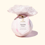 How sweet the sound of soaking in a tranquil and relaxing bath at the end of a long day. This pure and fragrant bath balm will sooth your soul as the ball dissolves from white to red, leaving a gracious reminder in the tub. Jojoba oil, geranium and rosemary essential oil, fragrance oil. Cross inside.