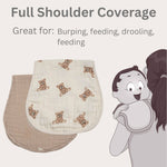 Made with two layers of super-soft, breathable cotton, our pre-washed muslin burp cloth is gentle on your baby’s delicate skin. Designed with a modern peanut shape for full shoulder coverage, it’s perfect for feeding, burping, spit-ups, and drooling.
