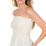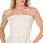 We're so excited to introduce our woven chic top! This gorgeous smocked tube top is a true showstopper. The ruffle hem gives it that extra pizzazz that we all crave. It's perfect for a night out on the town or a day spent soaking up the sun. You'll feel confident and stylish when you slip it on – trust us! Check it out today.