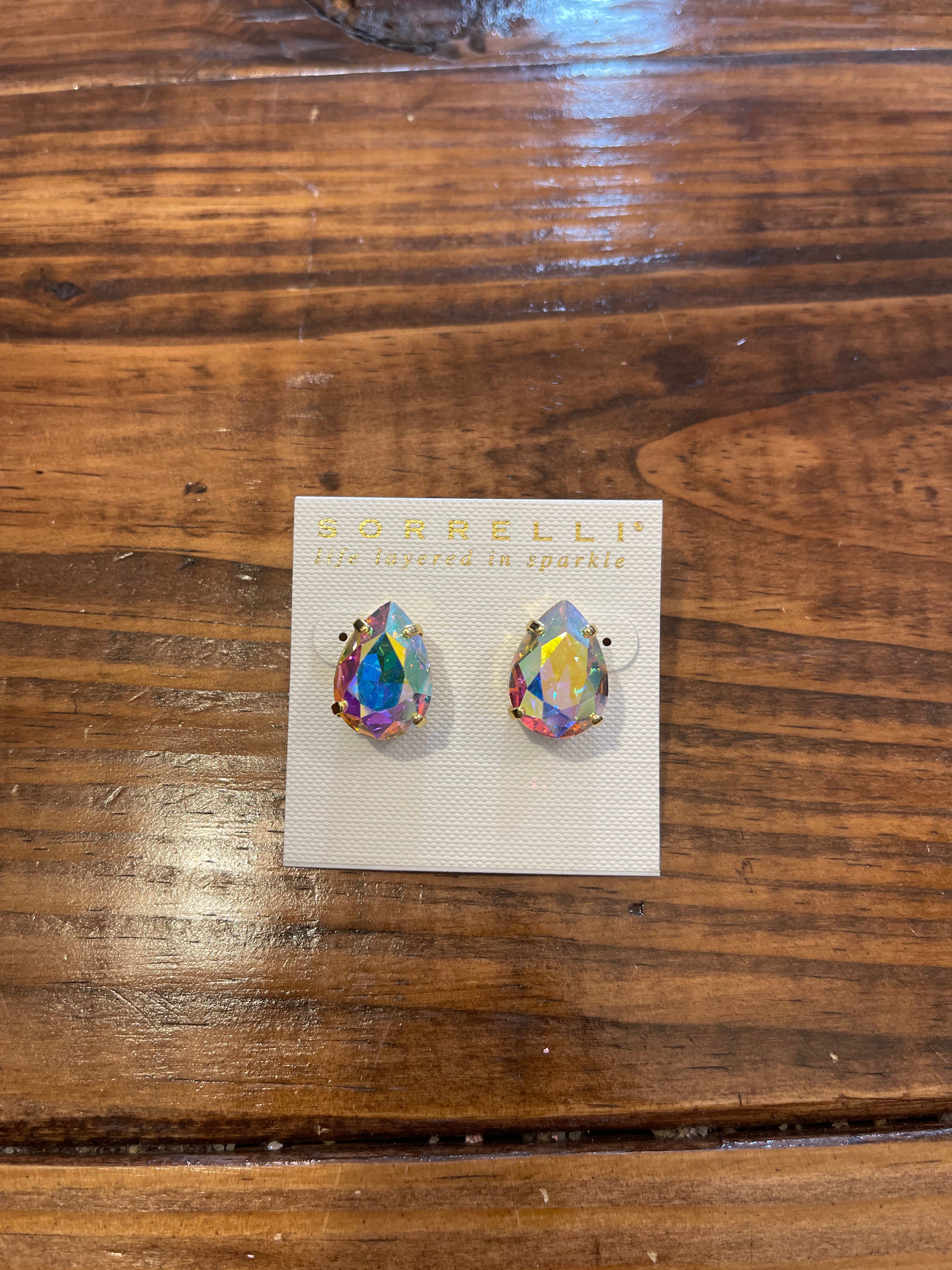 The Eileen Stud Earrings feature a single pear cut candy gem crystal on a post.