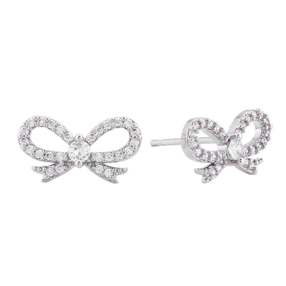 Gold Dipped Cubic Zirconia Studded Bow Stud Earrings