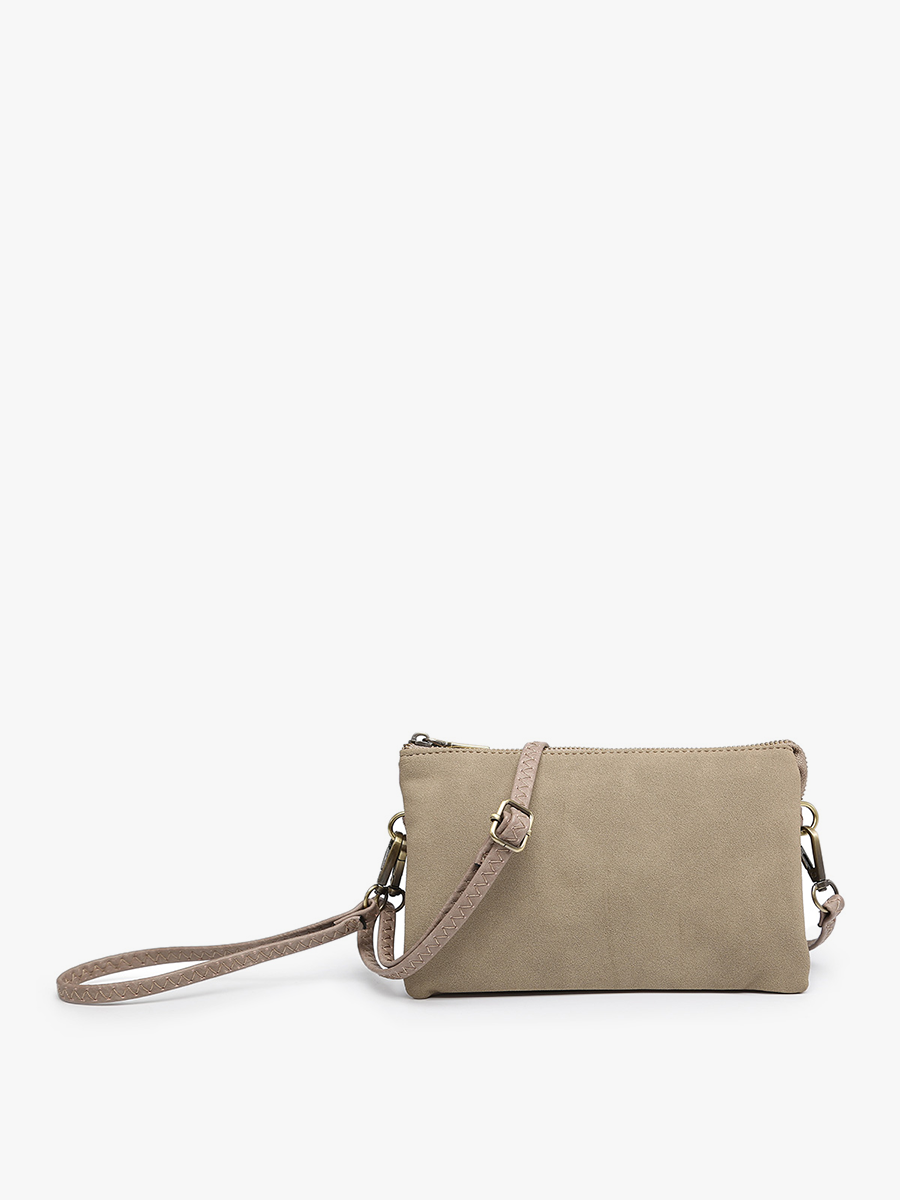 Live your dreams with our Suede Dreams Crossbody. Featuring a top zipper closure, two major compartments, a middle zipper pocket, 2 slip pockets, and 6 cardholders, it's the ultimate accessory for the organized fashionista. Made of soft faux suede material and accented with gold-tone hardware, it's a sight to behold. The detachable wristlet strap and adjustable/detachable shoulder strap make it perfect for any occasion.