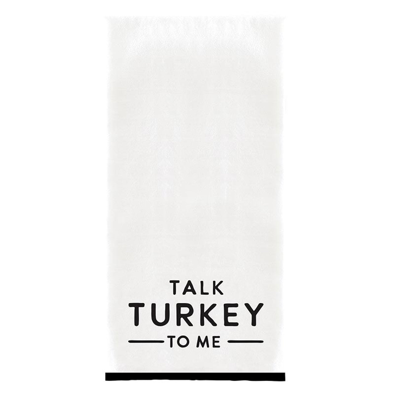 Bring effortless style to your home. Each tea towel has a printed phrase along with a black overlock stitched edging. All tea towels are folded with a cotton twill tie for easy gift giving.