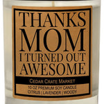 Thanks Mom, I Turned Out Awesome!, 100% Soy Candle, Lavender, Citrus, Woody