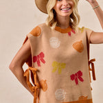Thanksgiving Pattern Side-Tie Sweater Vest