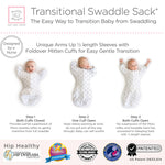 The Transitional Swaddle Sack was created by a nurse and mom of two, and it is so special it has earned a patent for its design! The Transitional Swaddle Sack is the easy way to transition baby from the swaddle, and it is designed to bridge the gap between snug swaddling and a loose-fitting sleeping sack. The Transitional Swaddle Sack is a very important innovation for babies who can roll over.