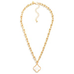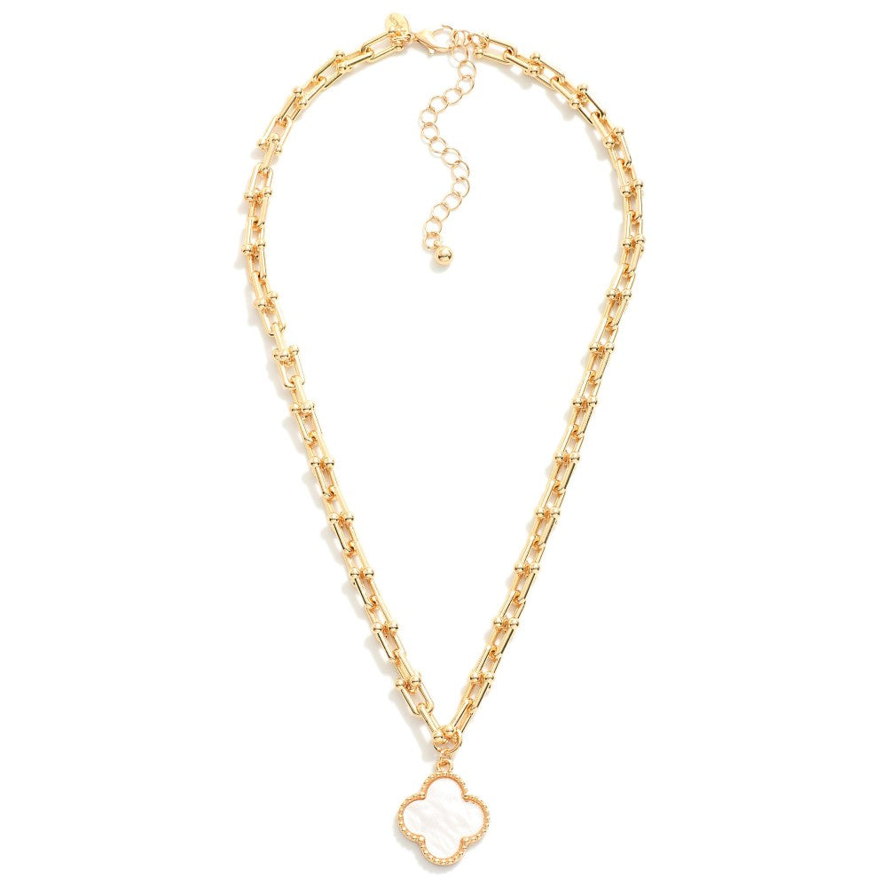 Metal Tone U Link Necklace Featuring Clover Pendant