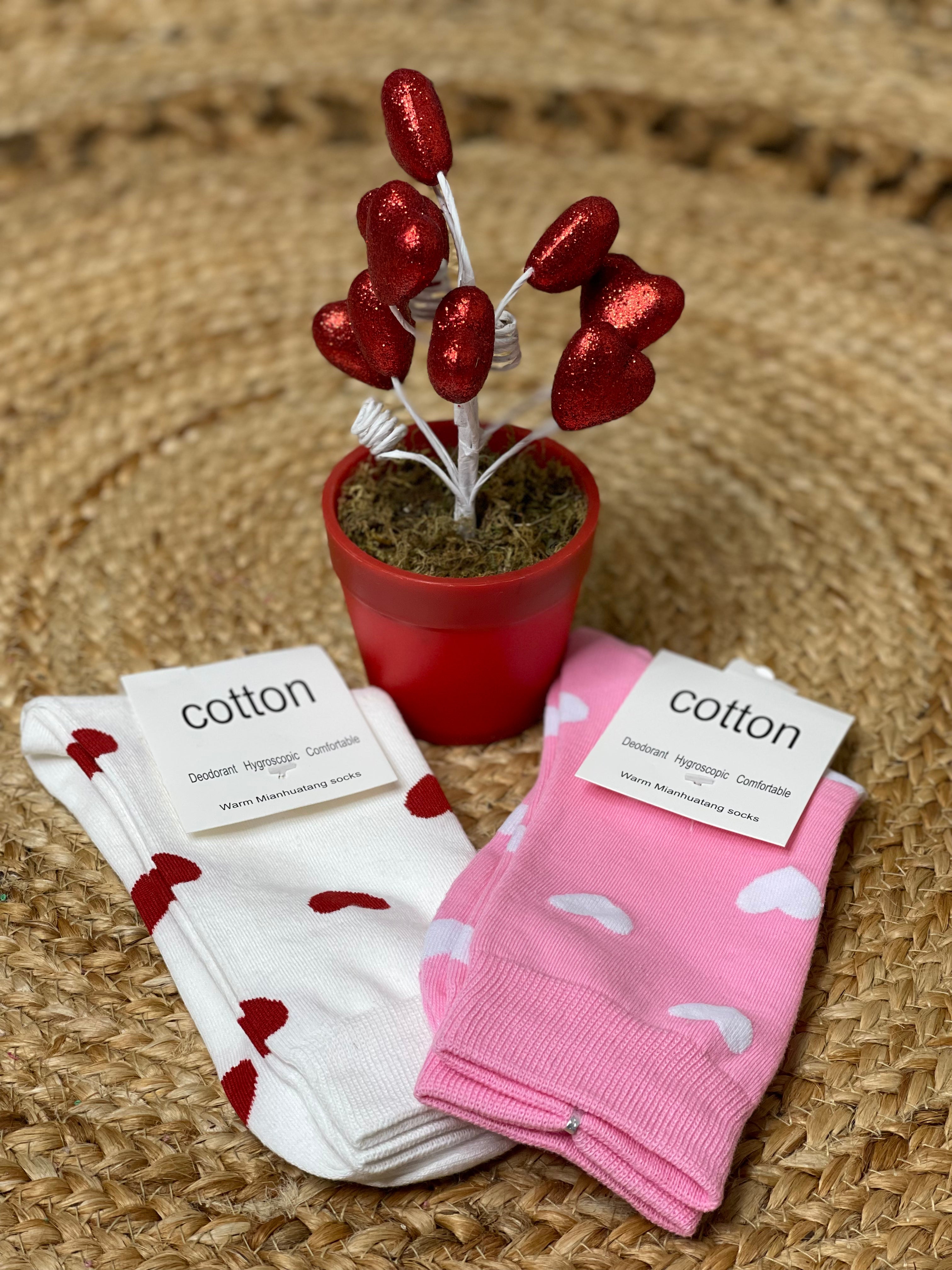 Step up your sock game with our Valentine's Socks! Featuring a heart pattern, these casual socks are made with high quality, comfortable and stretchy cotton fabric. Available in pink and white, these socks are free size, making them the perfect gift for your loved one.