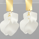 Add a touch of elegance to your outfit with our White Petal Earrings. The beautifully crafted metal petals are coated with a stunning color, making them a must-have accessory. With secure post backs and a sleek 2" length, these earrings are the perfect combination of style and functionality.