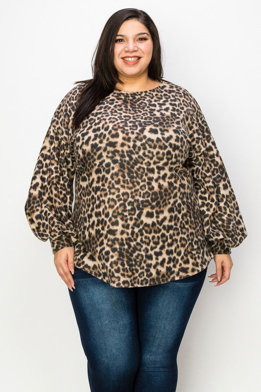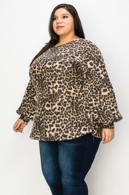 Wildly Cozy Leopard Print Bubble Sleeve Sweater (3XL-5XL)