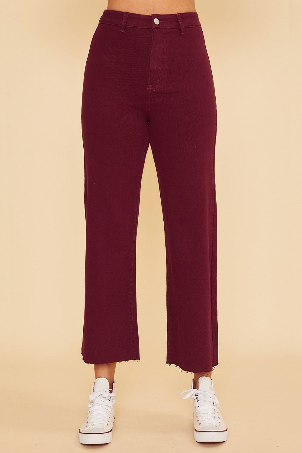 Experience ultimate comfort and style with our Wine Wide Leg Pants! Made from stretch denim, these high-rise pants offer flexibility and a flattering fit. The wide-leg and cropped length add a trendy touch to any outfit. Plus, they're perfect for dressing up or down, making them a versatile addition to your wardrobe. Available in regular and plus sizes.