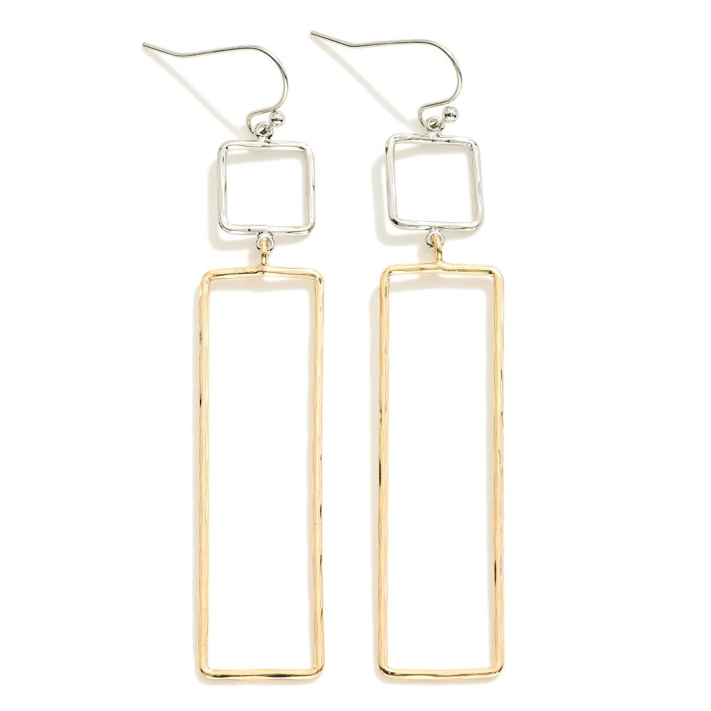 Plated Brass Linked Wire Bar and Square Drop Earrings
