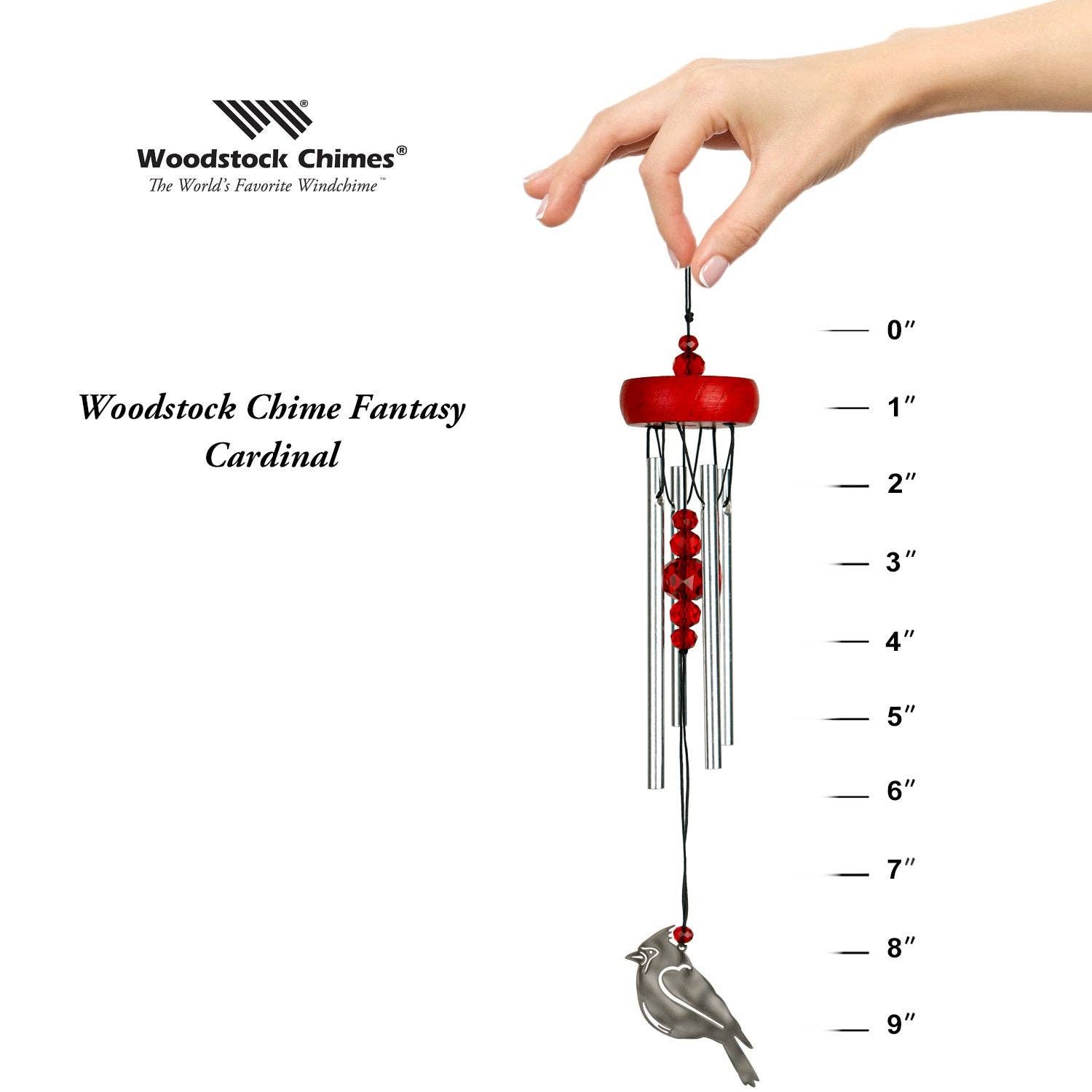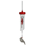 Delicate chiming combines with sparkling crystals and motifs from nature and mythology to enchant and delight. A silver cardinal surveys the world as the windcatcher (or, if you will, dreamcatcher) of this chime. Red faceted crystals embellish the chime. This bold color is often used to express love as well as strength and courage.