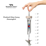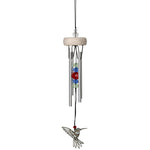Delicate chiming combines with sparkling crystals and motifs from nature and mythology to enchant and delight. A silver hummingbird acts as the windcatcher (or, if you will, dreamcatcher) of this chime. Multi-colored crystals embellish the chime, evoking the bright colors of summer, when hummingbirds are most active.