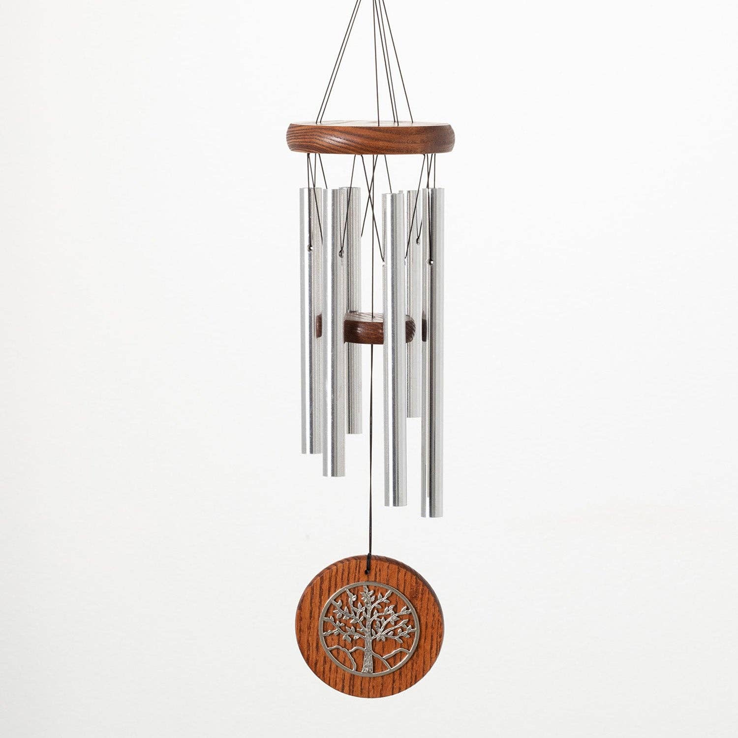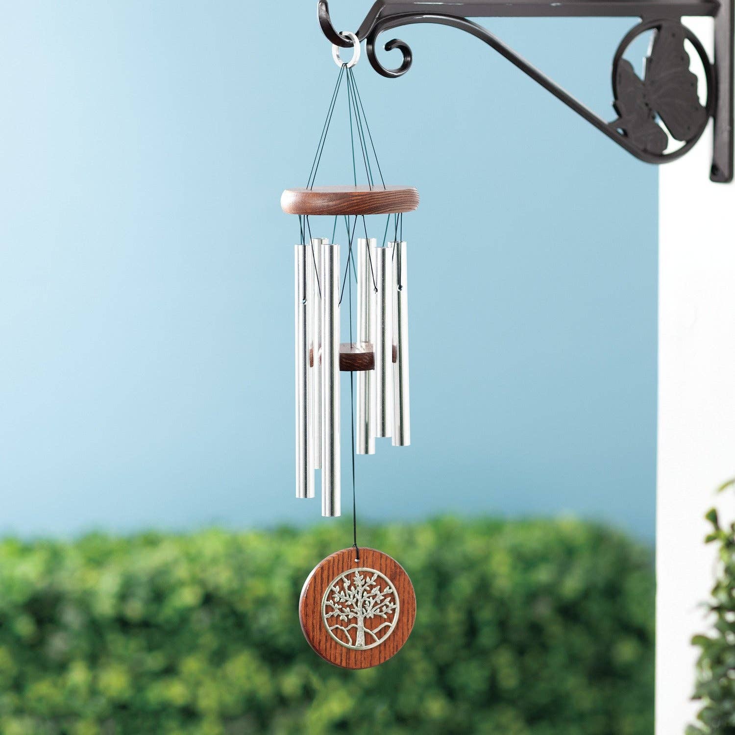 This charming chime features a beautiful, silver finish cast metal Tree of Life ornament.