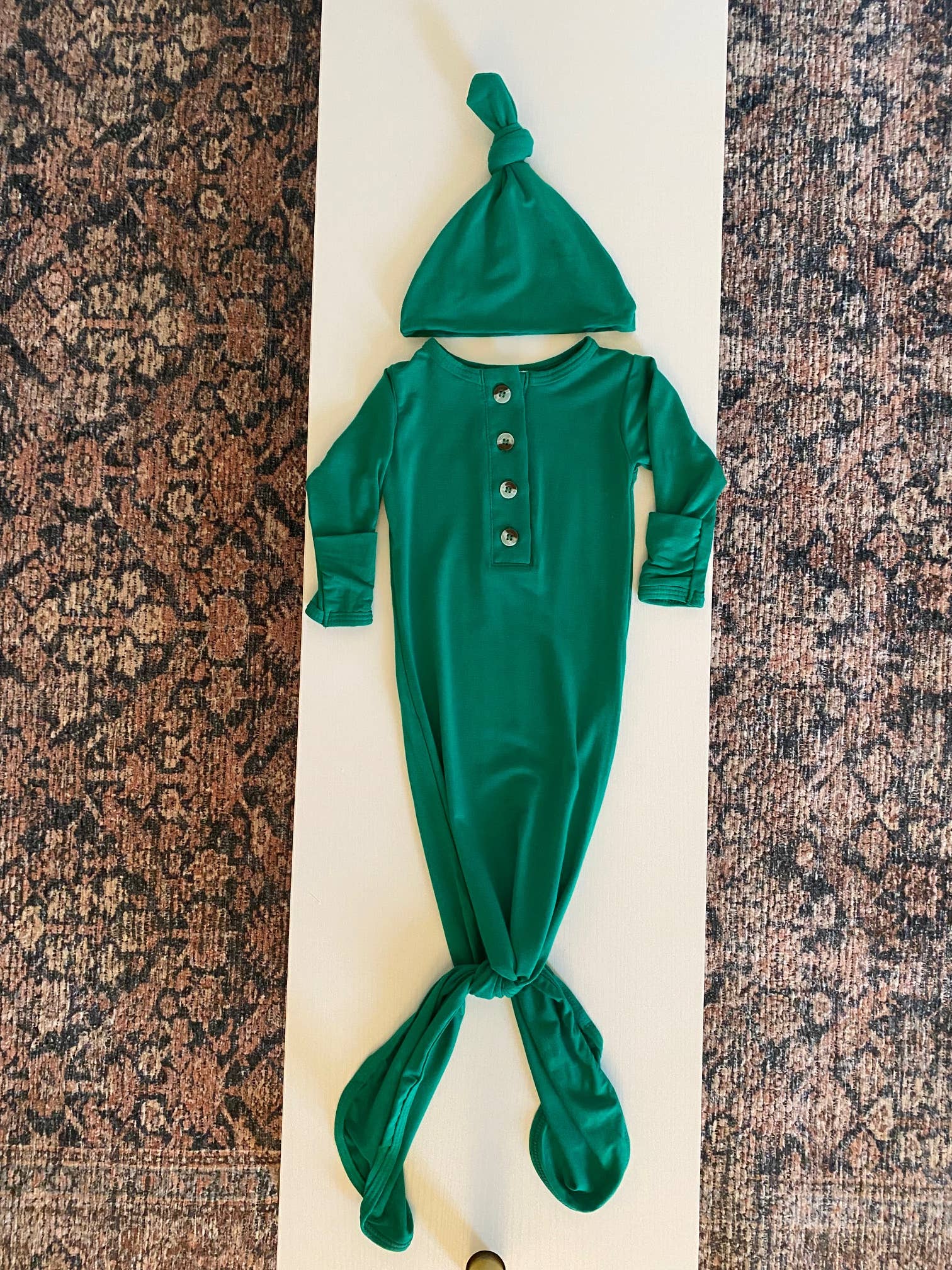 Expand your newborn clothing selection with Stroller Society's Knotted Baby Gown & Hat Sets! Crafted from luxuriously soft fabric, these ultra-soft newborn outfits ensure comfort for your little customers. Built-in no-scratch mittens protect delicate skin, while convenient buttons and a knotted bottom make dressing and diaper changes a breeze. Perfect for Boys & Girls: Available in multiple colors, these adorable baby gowns are ideal for newborns up to 3 months. Looking for boys clothing or baby girl clothes? Look no further! This premium baby clothing line offers both comfort and style. Must-Have Baby Gift: Add these hot-selling knotted gown & hat sets to your inventory today! They're a perfect baby gift for any new parent. Shop the Collection: For a wider selection, explore our baby clothes including our baby gowns with headbands for girls and our top & bottom outfits - ideal for both boys and girls. These knotted baby gowns make perfect newborn gifts.