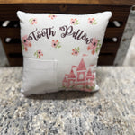 Make every Tooth Fairy visit feel magical with our Princess Castle Tooth Fairy Pillow. Featuring dainty floral accents, a soft white background, and a charming pink castle, this sweet keepsake adds fairy tale fun to bedtime.