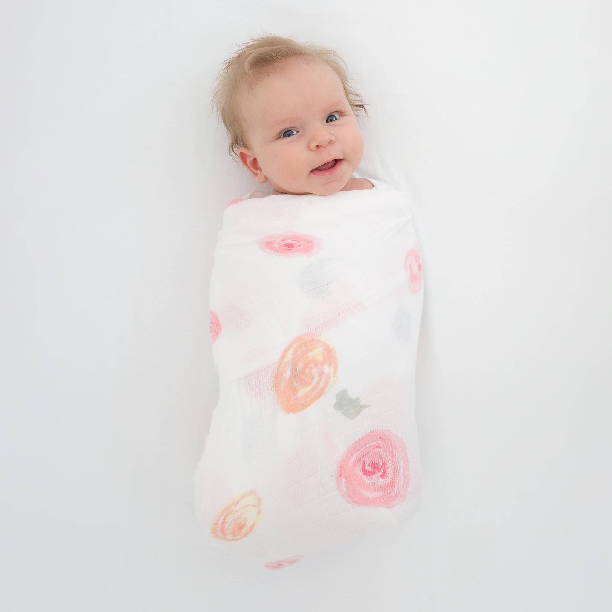 Watercolor Roses Muslin Swaddle Blanket, Premium Cotton