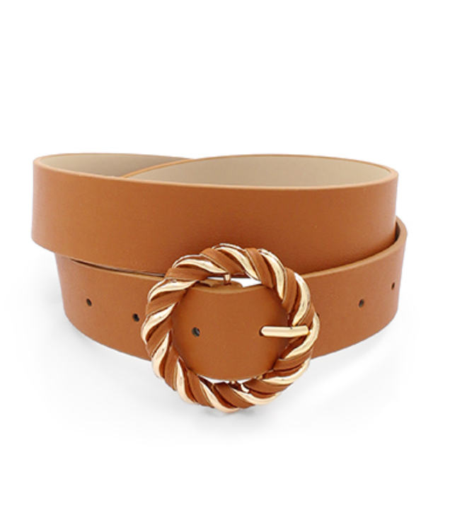 Brown Vegan Leather Belt with Oval Embossed Buckle