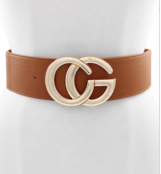Gold Vegan Leather Belt with Oval Embossed Buckle