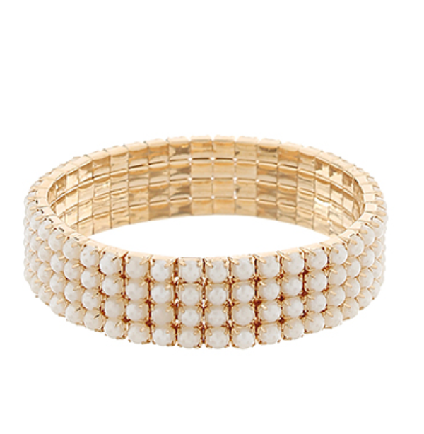 Wide Pavé Crystal & Pearl Stretch Bracelet