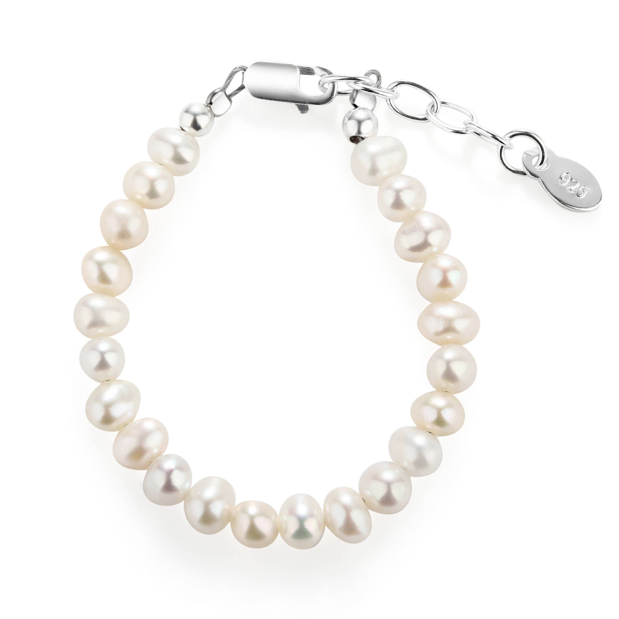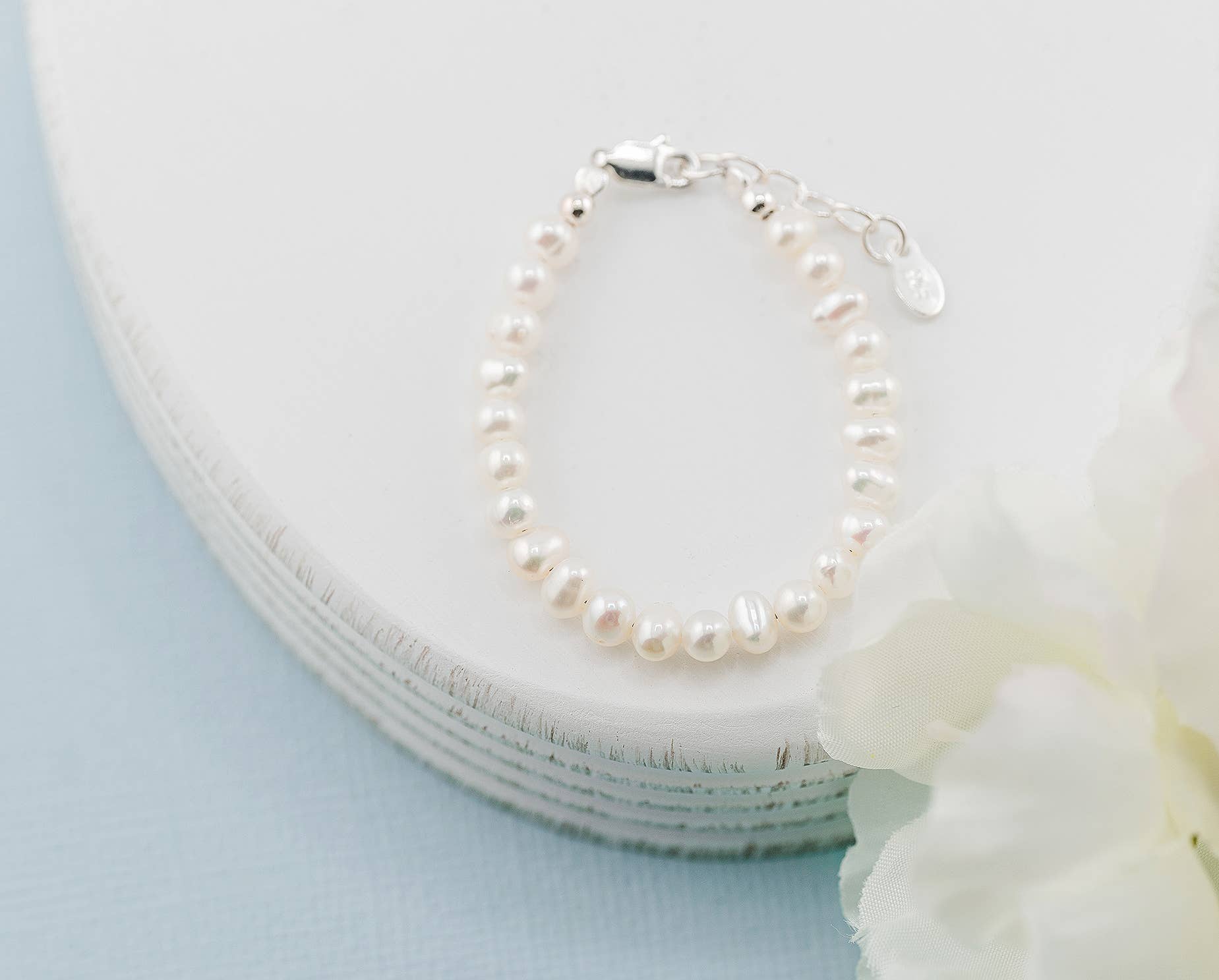 Girls Sterling Silver Dainty Pearl Bracelet: Medium 1-5 Years