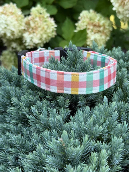 Small Coral and Teal Plaid Limited Edition Dog Collar