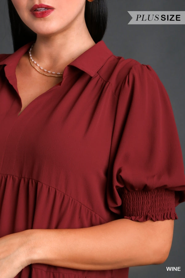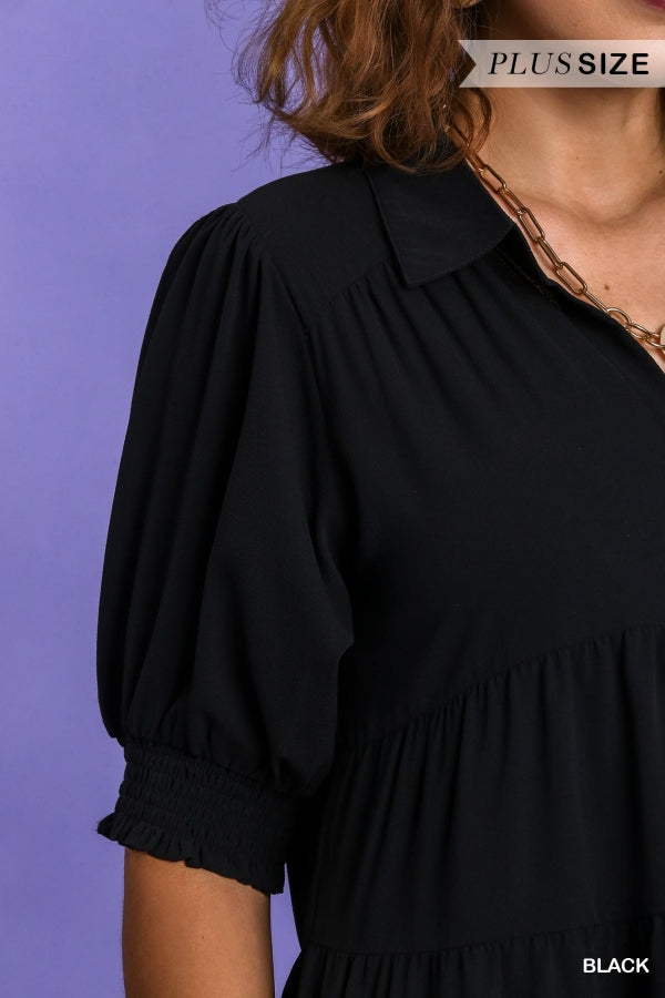 Look sophisticated and stylish in this Graceful Maxi Dress. This collared dress features cuffed 3/4 sleeves and tiers perfect for a relaxed look. Its lightweight material and unlined design make it ideal for any season. Get the ultimate comfort and style in Umgee curvy sizes. In Red and Black.