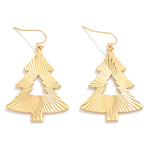 Textured Christmas Tree Drop Earrings – Gold Tone