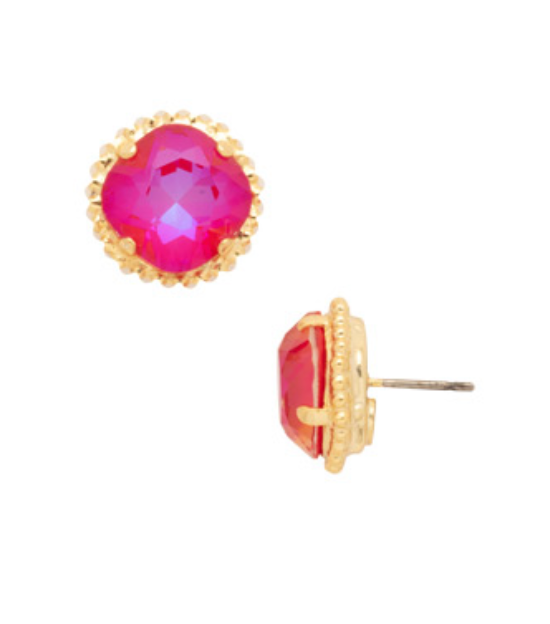 Gold Crystal Cushion-Cut Solitaire Stud Earrings