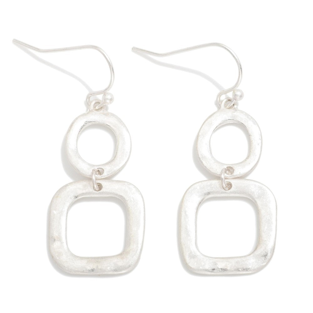 Silver Linked Hammered Metal Circle & Square Drop Earrings