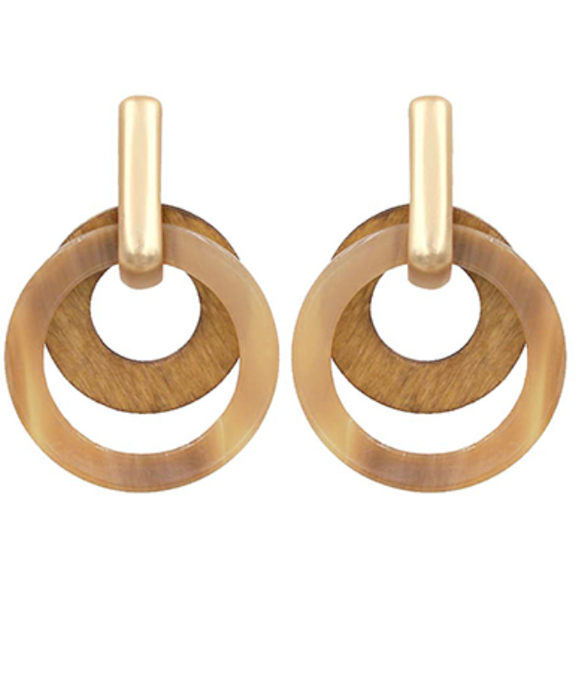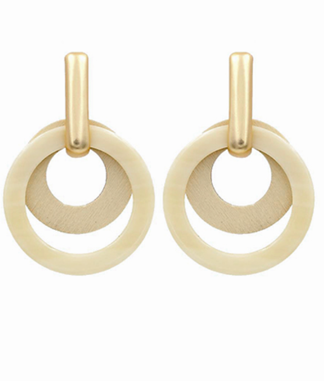 Layered Wood & Acrylic Circle Earrings- Ivory