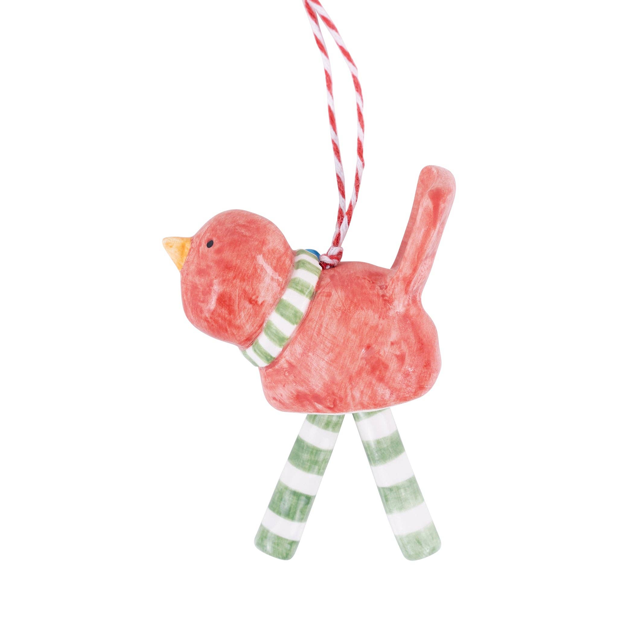 Add a touch of whimsy to your Christmas tree with our charming hand-painted ceramic ornament featuring a bright red bird adorned with holly and berries. This sweet cardinal’s dangling legs swing gently to the rhythm of your favorite holiday tunes, creating a cheerful twinkle of movement and joy.